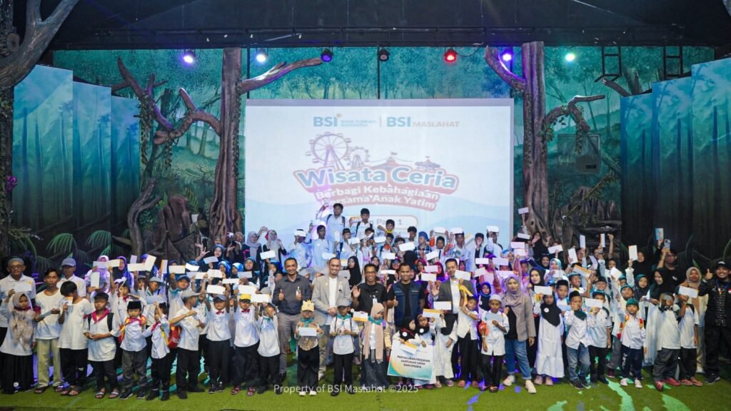 Batu, 30 Desember 2025 – BSI Maslahat bersama BSI Region Surabaya menyelenggarakan program Wisata Ceria dengan mengajak anak-anak yatim berwisata ke  Jatim Park. Kegiatan dilaksanakan pada Selasa, 23 Desember 2025, bertepatan dengan masa libur sekolah. Program ini menjadi bentuk komitmen dalam menghadirkan kebahagiaan sekaligus edukasi bagi anak-anak yatim. Baca juga: BSI Maslahat dan BSI Hadirkan
