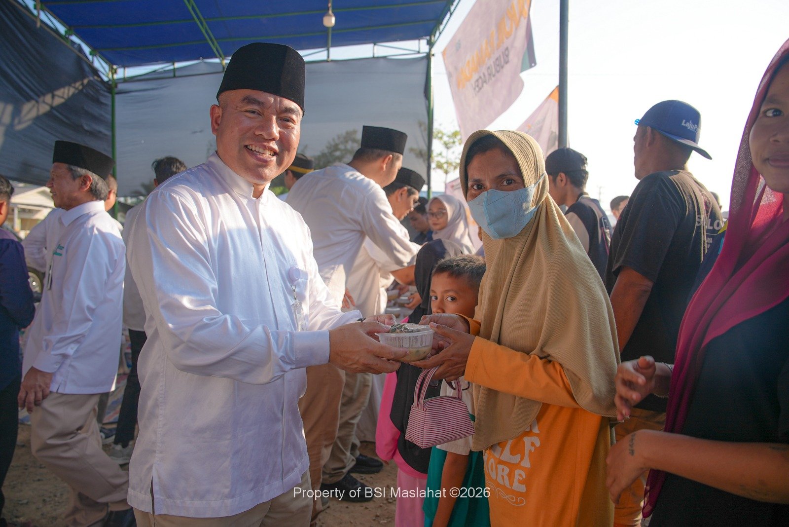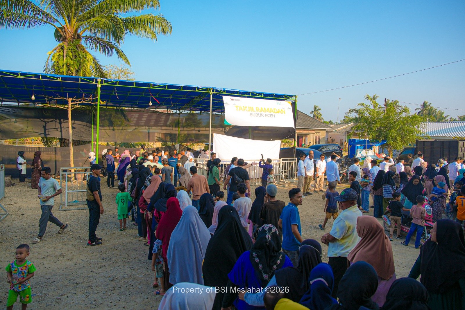 Aceh Tamiang, 07 Maret 2026 — BSI Maslahat Bersama BSI menggelar kegiatan berbagi paket buka puasa berupa Bubur Aceh bagi anak-anak yatim, warga hunian sementara (Huntara), serta masyarakat sekitar di Huntara Aceh Tamiang, hari Sabtu (7/3). Kegiatan ini menjadi bagian dari upaya menghadirkan kebahagiaan dan keberkahan di bulan suci Ramadan, khususnya bagi masyarakat yang terdampak banjir yang saat ini tinggal di hunian sementara.