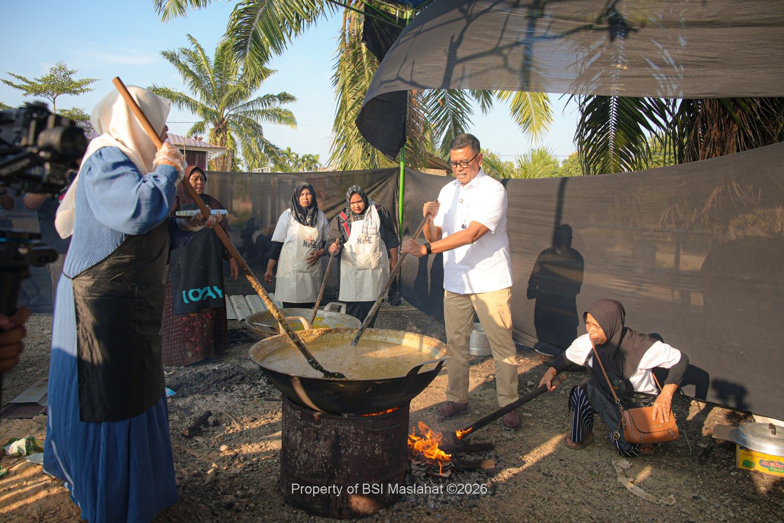 Dalam kegiatan tersebut, tim relawan BSI dan BSI Maslahat bersama para warga sekitar memasak Bubur Aceh secara gotong royong sejak siang hari. Proses memasak dilakukan dengan penuh kebersamaan sebagai bentuk kepedulian sosial serta dukungan moral bagi masyarakat yang sedang menjalani masa pemulihan pasca bencana.