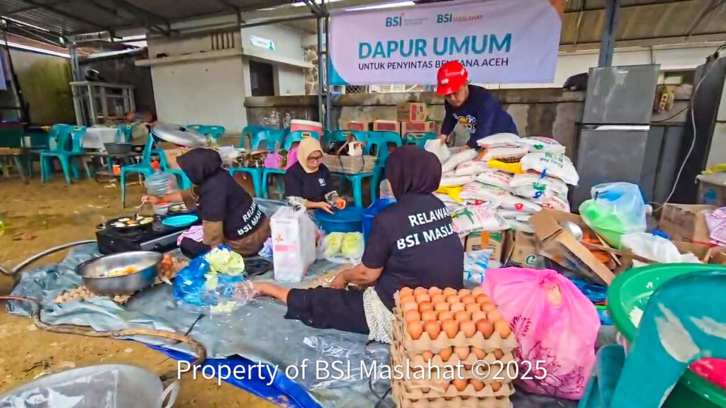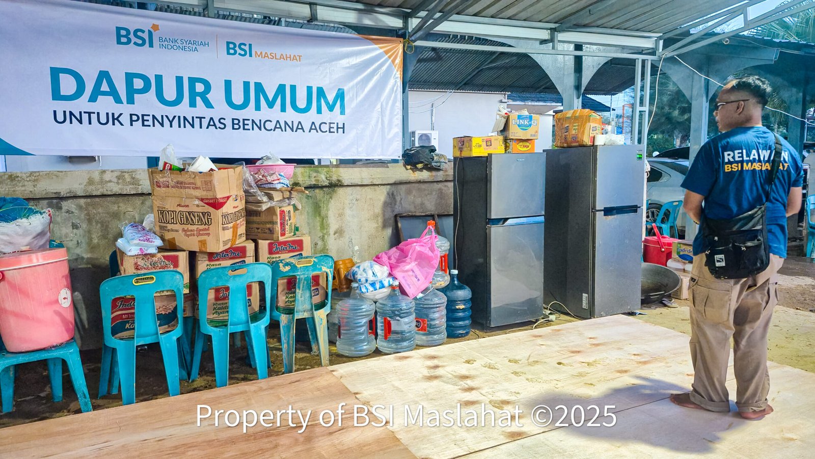 Pada 6 Desember 2025, Dapur Umum BSI dan BSI Maslahat mulai beroperasi dengan pendistribusian awal sebanyak 1.000 paket makanan untuk wilayah Aceh Tamiang, Langsa, dan Kuala Simpang. Selanjutnya, dapur umum menargetkan pendistribusian 2.000 paket makanan per hari untuk memenuhi kebutuhan pangan para penyintas.