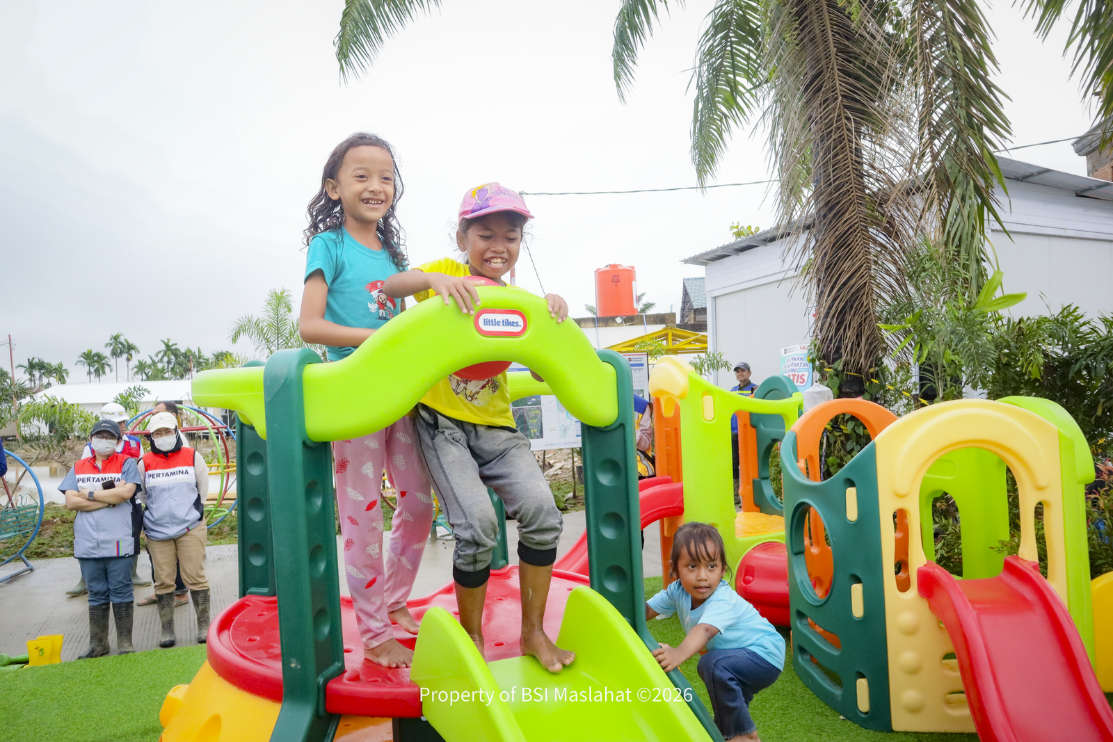 BSI Maslahat berkontribusi membangun 90 unit Huntara dari total keseluruhan 600 unit. Huntara dibangun sesuai standar kelayakan hunian darurat, dengan struktur yang aman, akses air bersih, sanitasi yang memadai, serta dukungan listrik dan layanan kesehatan. Pembangunan juga memperhatikan kebutuhan sosial masyarakat agar warga dapat kembali beraktivitas, dilengkapi dengan fasilitas pendukung seperti klinik, taman bermain, serta akses internet dan listrik tanpa biaya.