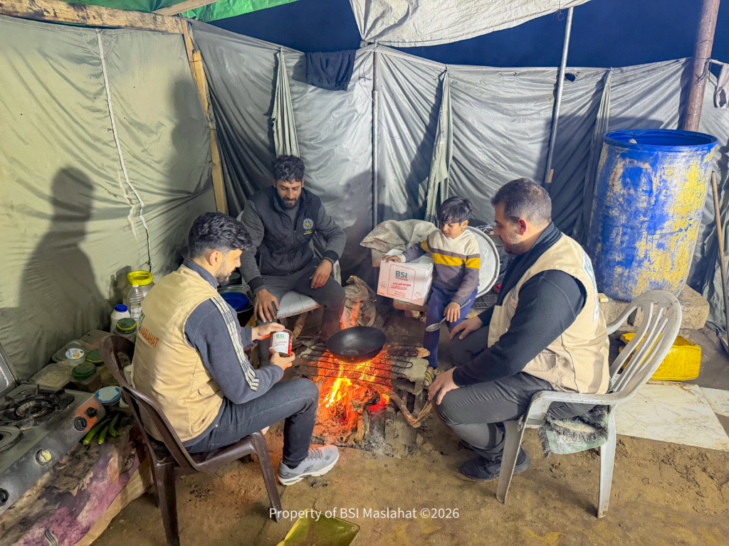 Para relawan bahkan memasak daging tersebut bersama para penyintas. Mereka menyalakan tungku sederhana di antara tenda-tenda yang berdiri rapat. Aroma masakan mulai menyebar dan menghangatkan suasana malam yang dingin. Anak-anak berkumpul dengan mata berbinar, menunggu giliran untuk menikmati makanan bergizi yang jarang mereka dapatkan di tengah krisis berkepanjangan.