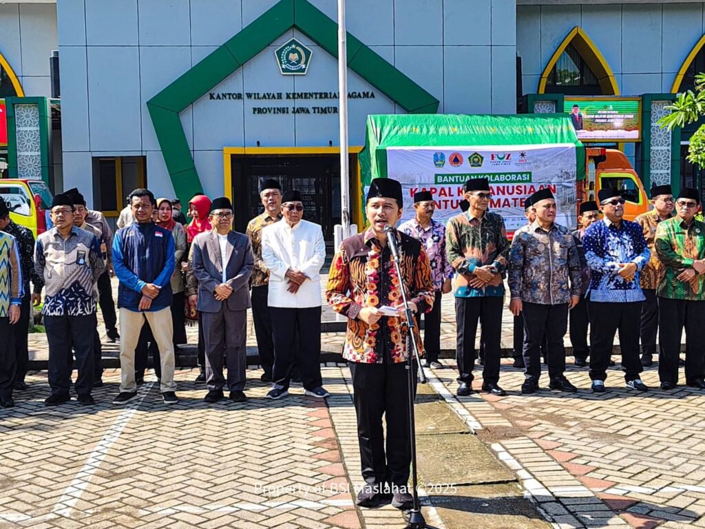 Surabaya, 15 Desember 2025 – BSI Maslahat bersama Forum Zakat (FOZ) Jawa Timur berkolaborasi menyalurkan bantuan kemanusiaan untuk warga terdampak banjir dan longsor di Aceh dan Sumatra. Bantuan berupa kebutuhan pokok seberat 103 ton senilai Rp2,3 miliar dikirim melalui jalur laut menggunakan kapal Meratus sebagai dukungan dari Ikatan Pengusaha Cargo Nasional (IPCN). Bantuan diberangkatkan dari Depo Pelabuhan Tanjung Perak Surabaya menuju Pelabuhan Belawan, Medan.