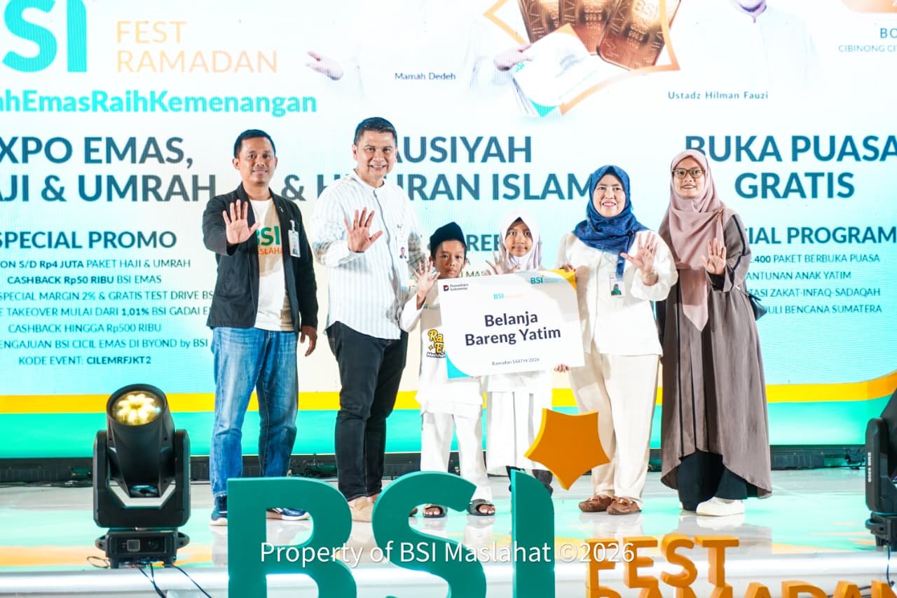 Bogor, 02 Maret 2026 – Suasana Ramadan di Cibinong City Mall pagi itu terasa berbeda. Senyum- senyum kecil tampak memenuhi area lobi utama. Sebanyak 100 anak yatim dhuafa dari tiga yayasan yaitu, Yayasan Atta’awun Citayam, Yayasan Nurul Hidayah, dan Yayasan Ar Ruhama berkumpul untuk mengikuti kegiatan Belanja Yatim yang diinisiasi oleh BSI Maslahat dan PT Bank Syariah Indonesia (Persero) Tbk dalam rangka Ramadan Fest 2026.