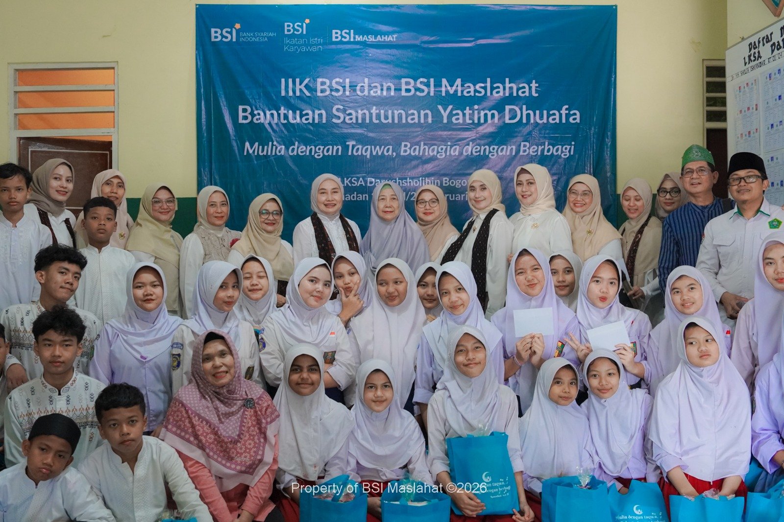 Bogor, 23 Februari 2026 – Dalam suasana Ramadan yang penuh keberkahan, BSI Maslahat bersama Ikatan Istri Karyawan BSI Pusat (IIK BSI Pusat) menyalurkan paket sembako dan santunan kepada anak-anak yatim di LKSA Darushsholihin, Bogor, pada Senin (23/02).