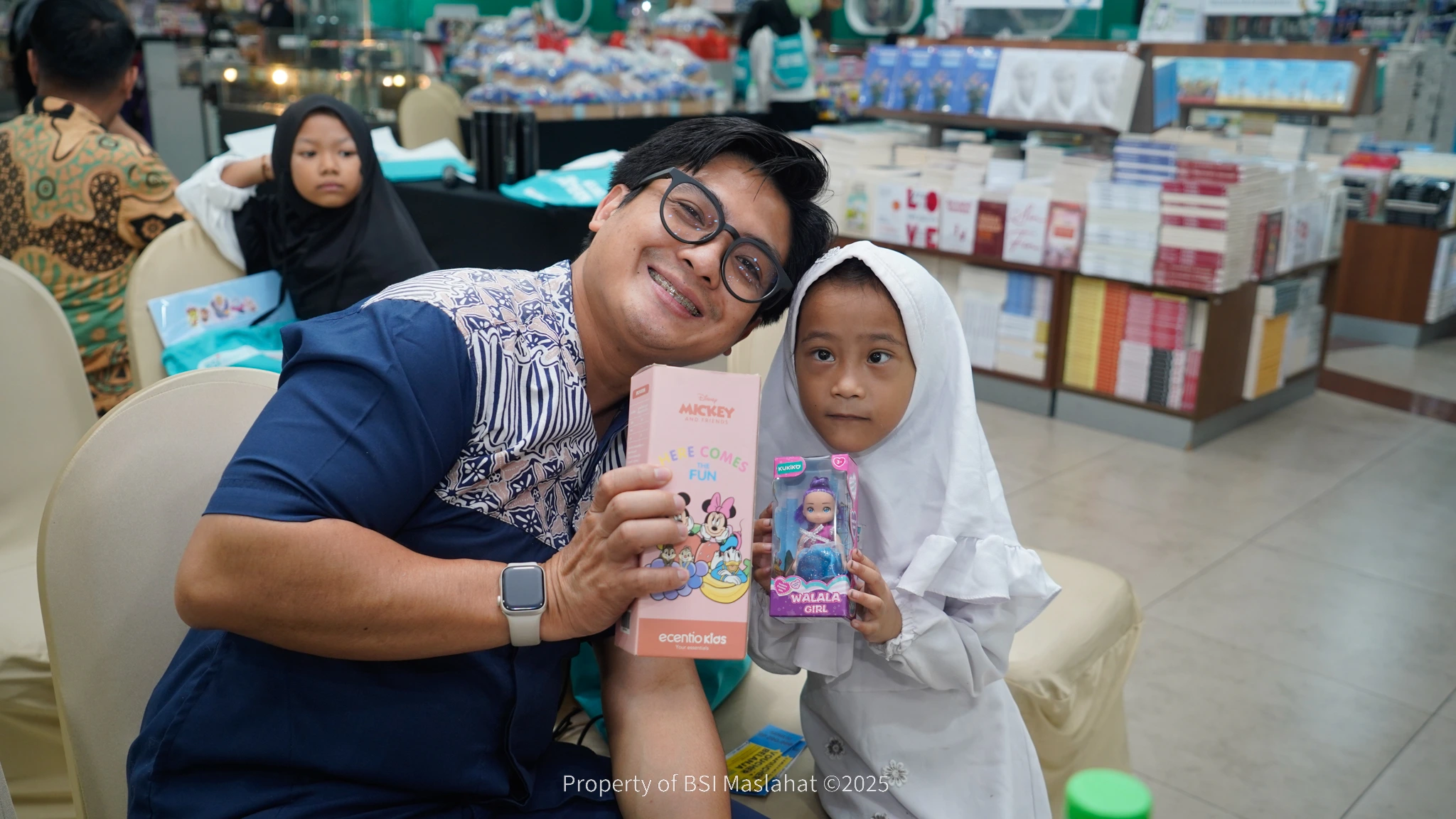 Sebanyak 50 anak yatim dan dhuafa mendapatkan kesempatan istimewa untuk memilih langsung kebutuhan sekolah maupun barang impian mereka. Mulai dari buku tulis, tas sekolah, hingga mainan semuanya dapat mereka pilih sendiri sesuai kebutuhan. Selain berbelanja, BSI Maslahat berbagi kebahagiaan dengan berbagi uang tunai, kuis, dan dongeng yang menghadirkan suasana hangat dan penuh keceriaan.