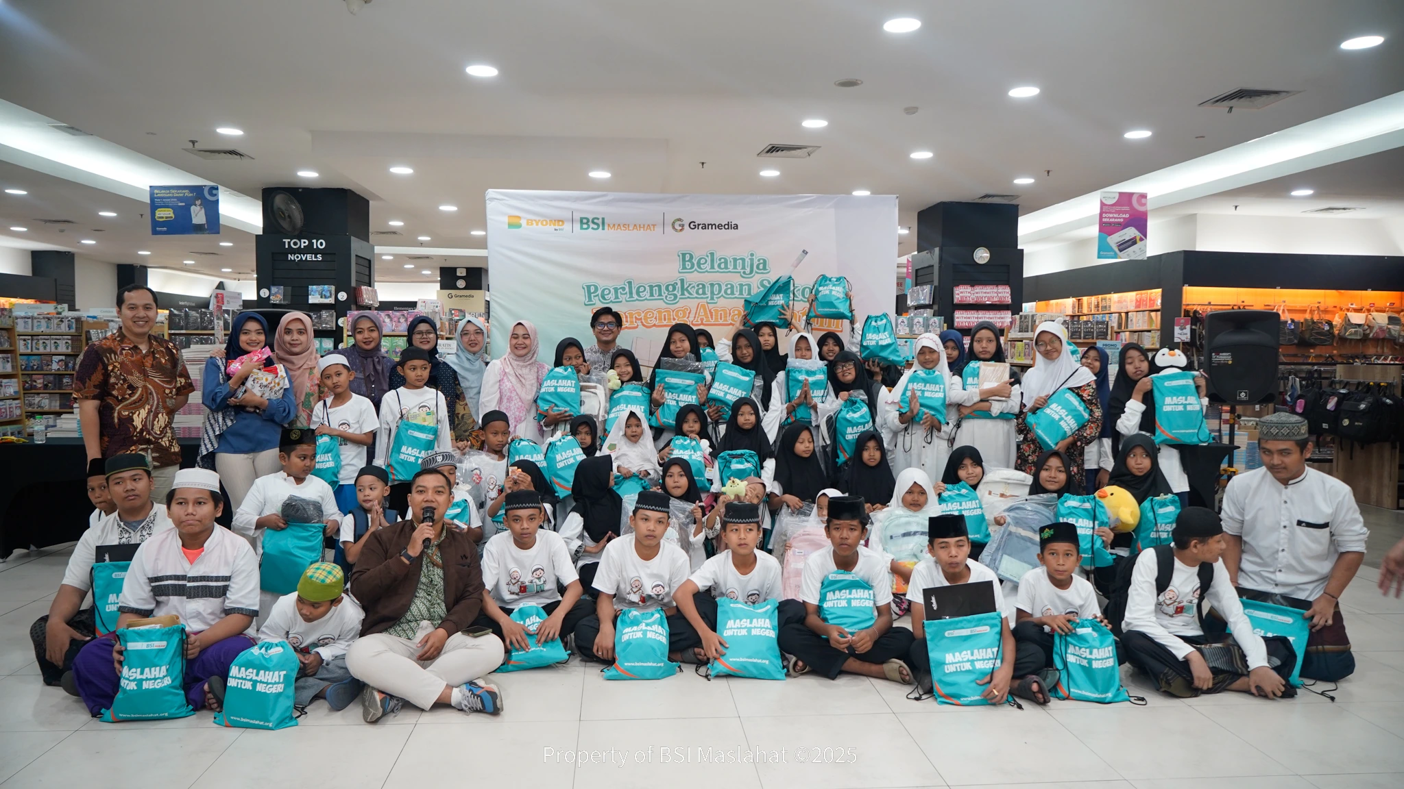 Surabaya, 2 September 2025 –Bangun Sejahtera Indonesia Maslahat (BSI Maslahat) mengajak 50 anak yatim belanja perlengkapan sekolah di Gramedia Expo Dyandra Convention Center, Surabaya, pada Rabu (27/8). Kegiatan ini merupakan bagian dari program Belanja Perlengkapan Sekolah Bareng Yatim yang digelar serentak di 11 lokasi di Indonesia. Program tersebut berlangsung di Aceh, Medan, Palembang, Jakarta, Bekasi, Bogor, Bandung, Semarang, Surabaya, Makassar dan Banjarmasin.