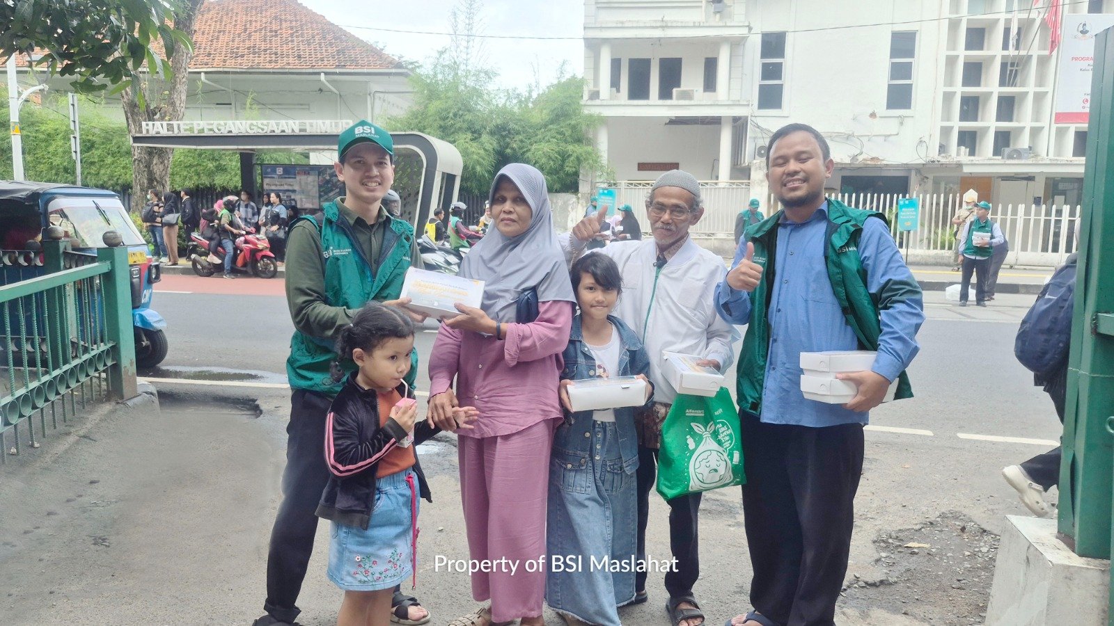 BSI Maslahat membagikan sebanyak 1.000 paket buka puasa di kawasan Stasiun Cikini dan kantor pusat BSI Maslahat pada hari Selasa, 3 Maret 2026. Sasaran penerima paket ini meliputi pengemudi ojek online, petugas kebersihan, pengemudi bajai, pejalan kaki, pengunjung stasiun, hingga keluarga pasien yang sedang berobat di RSCM.