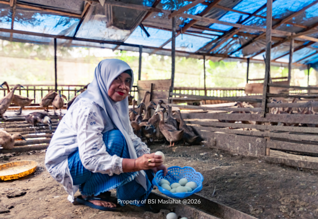 “Sebelum bergabung dengan Al‑Kautsar, saya hanya punya enam ekor itik,” tuturnya. Ia memulai pinjaman sebesar satu juta rupiah dari BWM Al‑Kautsar. Dari sanalah pinjaman tersebut mulai ia kelola dengan cermat, menjadi modal awal yang kemudian diperkokoh melalui pendampingan BSI Maslahat untuk mengembangkan usahanya lebih berkembang.